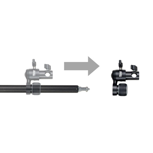グリップハンドルを使って照明機材の上下角度や左右の振りを自由に調節できます。カーボンファイバー製ポールを採用し、約290gと軽量。素早くセットアップでき、撮影の効率が大幅に向上します。特に、手の届かない高所に設置した照明機材の調整に便利です。