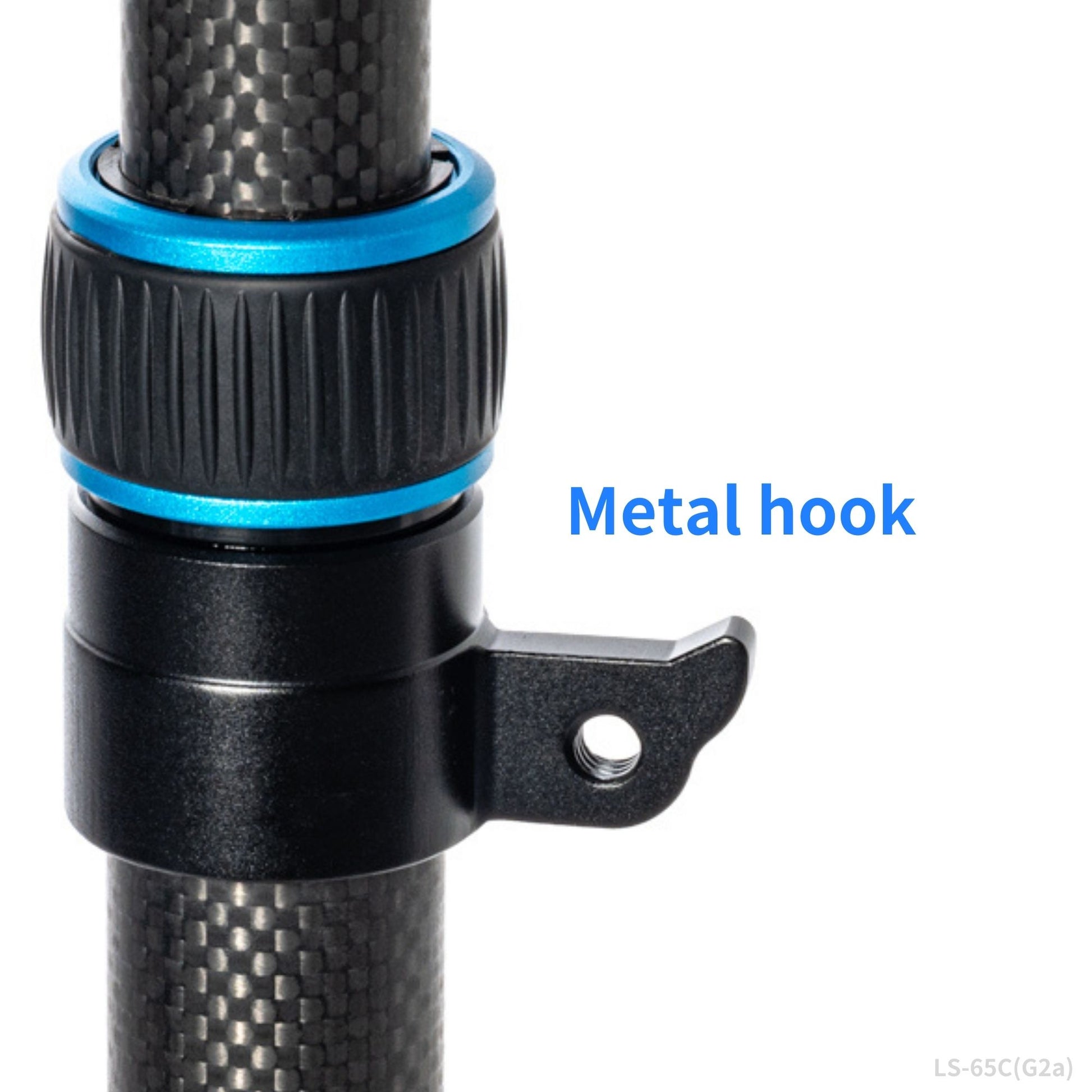 バッテリーパックやウェイトなどを引っ掛けられる頑丈なアルミフックをセンターポールに固定。